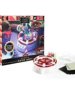 “Keep your budding artist entertained for hours on end with the Toy Spin Art 3D with LED from the extraordinary toy connoisseurs, FAO SCHWARZ. – Packaging Measurements: L33.7cm x H30cm x W10.2cm – Art supply kit includes: 4 x bottles of neon paint, spin art machine, 15 x black cardstock, 5 x white glow-in-the-dark cardstock, 3D glasses and instructions – Spin art machine features built-in LED lights – Recommended for ages 6+ – Batteries not included”