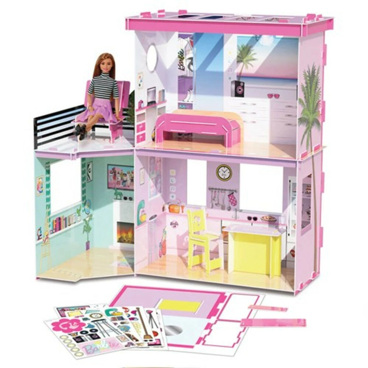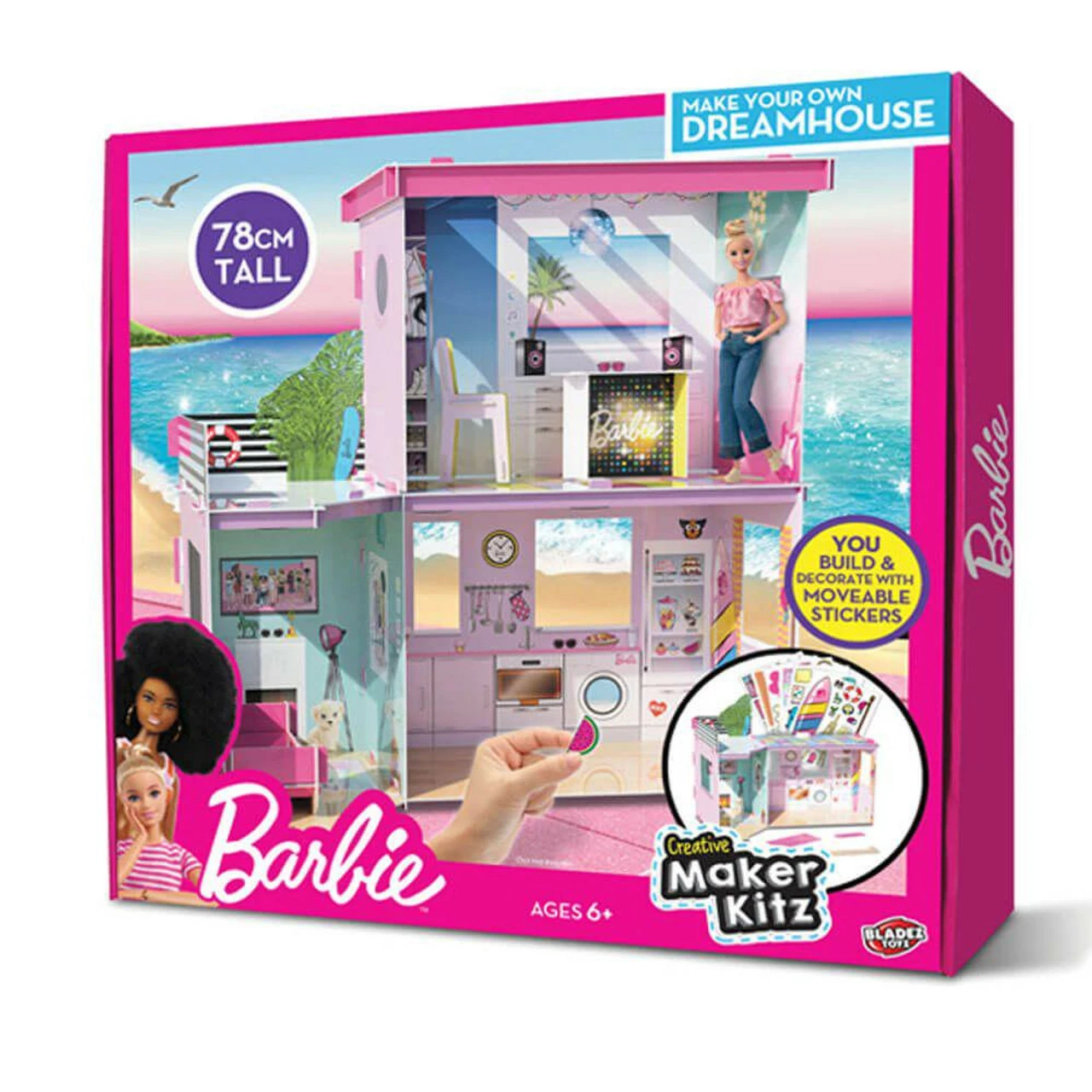 Easy to build from tough flat panels you can Make Your Own two-storey Dreamhouse! With stickers to customise the decor in Barbie’s unique style the assembled Dreamhouse stands 70cm tall. Can even be packed away flat to save space! Pack incldes 9 card craft panels and 6 sticker sheets.