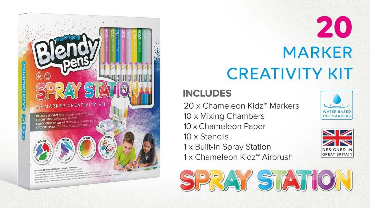 - With a built-in Spray Station and over 190 colour combinations, children can colour any way they want or simply use them like regular markers. Just connect two Chameleon Kidzā¢. Just connect two Chameleon Kidz⢠Blendy Pens to the Fusion Chamber then twist to create custom colour blends and incredible art!