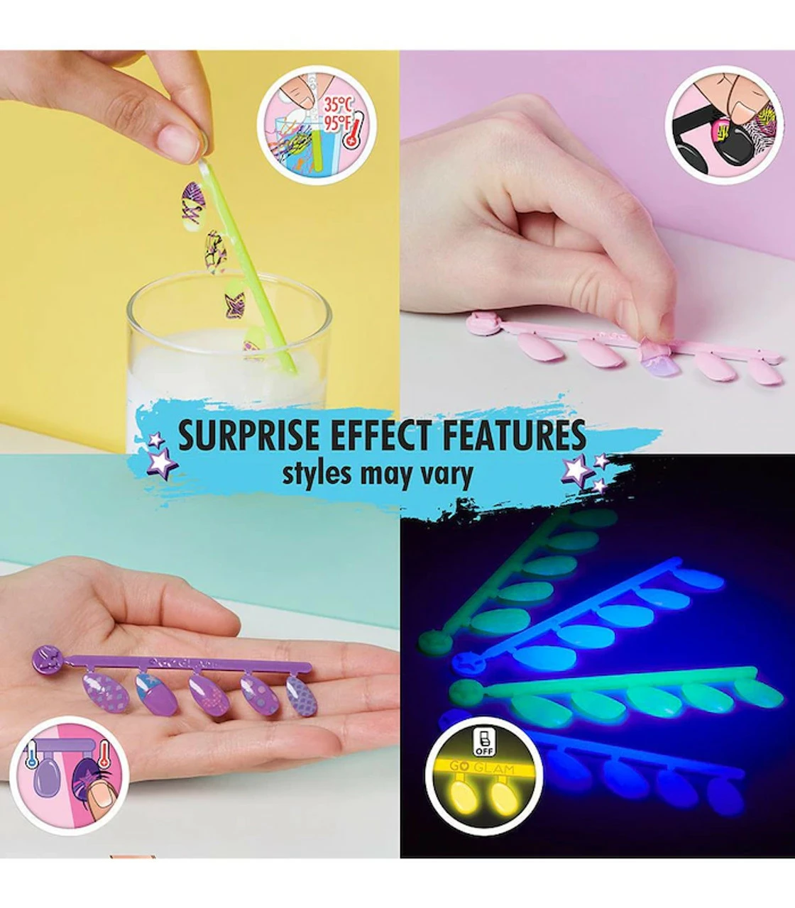 - DISCOVER EVEN MORE SURPRISES: Each GO GLAM Nail Surprise manicure kit comes with a surprise nail polish and super cute holographic nail stickers! Customize your nails any way you want!
