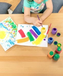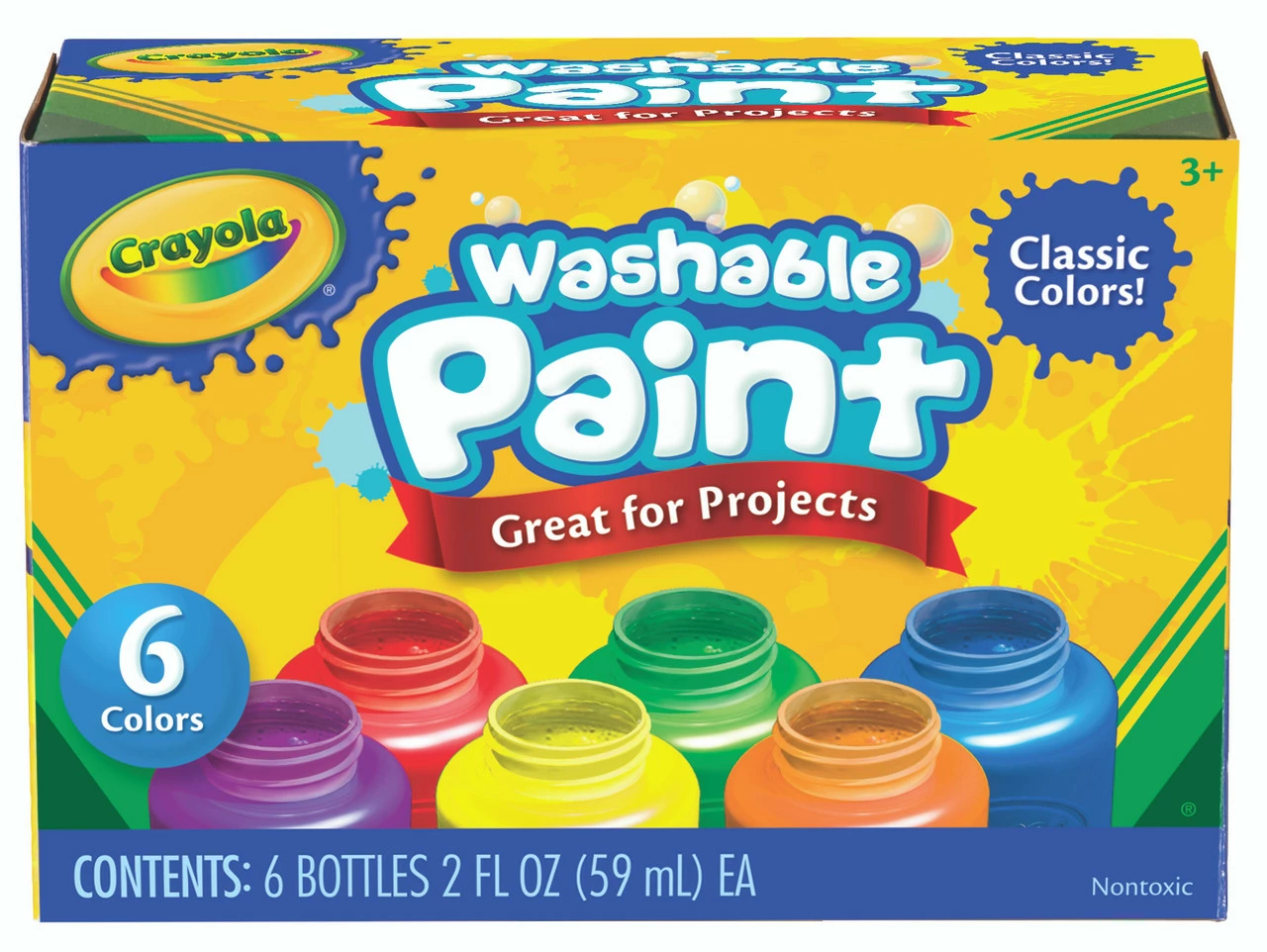 Washable Kid’s Paint is ideal for arts and crafts, posters, and school projects. Washable Poster Paint Classic Colors formula is non-separating, has great brushabilty and has a rich and creamy consistency that performs on colored and black paper. It is also suitable for blending colors and has wonderful bright color coverage. Crayola’s Washable Paint is specially formulated to wash off machine washable clothing. It also washes off walls, carpet and furniture with warm water and a sponge because not everything your child makes is a keeper.