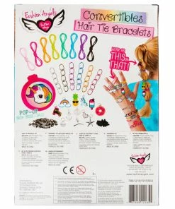 Kids can create cute and trendy hair ties with this Fashion Angels Convertibles Hair Tie Bracelet Kit! They can design and make up to 12 hair tie bracelets accented with charms, beads or chains; the choice is theirs. With this amazing kit, they can create cool combinations to wear both on their wrist and in their hair. They can share them with friends and use the included travel friendly pop-up brush and mirror to make sure their hair is on point! Includes: assorted beads (18g), 12 charms, 6 chain links, 8 colours of elastic cord, 15 silicone closures and instructions. Suitable for ages 8+.
