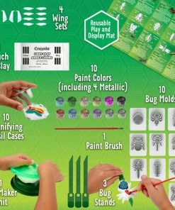 - CRITTER CREATOR METALLIC FOSSILS: Includes 1 Bug Maker Unit, 10 Bug Molds, 1 Pack of Light Clay (3 ounces total), 10 Fossil Cases, 3 Bug Stands, 6 Washable Paint Colours, 4 Specialty Metallic Paint Colours, 4 Sets of Bug Wings, 1 Paint Brush, 11″ x 17″ Display & play reusable bug FAQ Mat, Instructions.