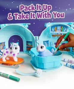 The Crayola Scribble Scrubbies Arctic Pets Igloo lets kids chill out with new colour-changing friends! This arctic-themed playset encourages kids to dream up icy adventures and create colourful designs for their Scribble Scrubbies Pets! Then watch as cute little pets change colours as temperatures dip below 55F. Place pets in the freezer for a minute or two and watch the transformation! Kids can create custom colourful patterns on their pets with washable markers, then wash pets clean to create new patterns again and again. Set includes 1 plastic Igloo doubling as a storage case with foldable handles, 2 new colour change pets, 3 markers, 1 brush, and 1 plastic tub. Safe and nontoxic. Makes an ideal gift for kids ages 3 and up. Works great with Crayola Ultra-Clean Markers too! Want to collect more pets? See our entire Scribble Scrubbie collection. Want to collect more pets? See our entire Scribble Scrubbie collection