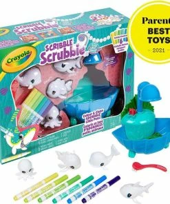 - SCRIBBLE SCRUBBIE PETS: Features 1 Blue Lagoon, 4 New Animal Figurines, 6 Washable Markers, and 1 Scrub Brush.