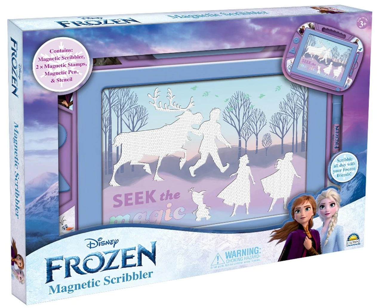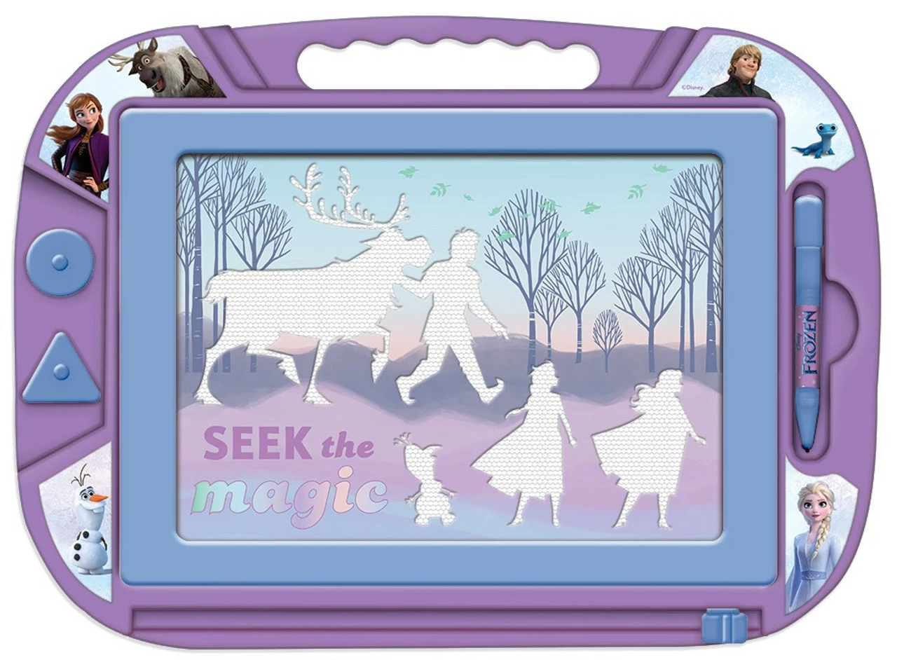 This gorgeous Frozen Large Magnetic Scribbler will entertain any Frozen fan whilst creating their own masterpieces and erasing them! Featuring the much loved characters from the Disney Hit Movies this beautiful scribbler comes with 2 x Magnetic Stamps, a Magnetic Pen, and a Frozen Scene Character Stencil. Hours of creative fun for your little one, simply draw and use the slide eraser to use over and over again.