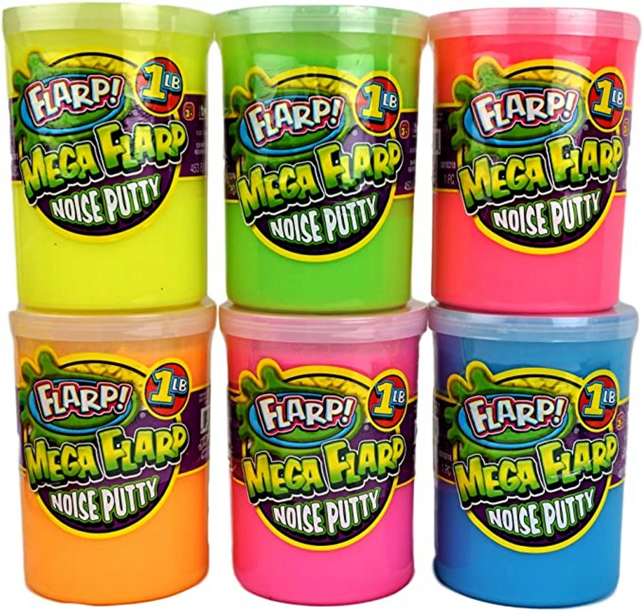 1 Unit Random Assorted Color of Mega Flarp Putty 1 Lb (1 Pound) Sound Making Fluffy Slime and Scented. Assorted Neon Colors Toys for Kids NEW! Flarp Quality! . Fun farrt noise-making putty in a container. Great Easter Basket Stuffers.