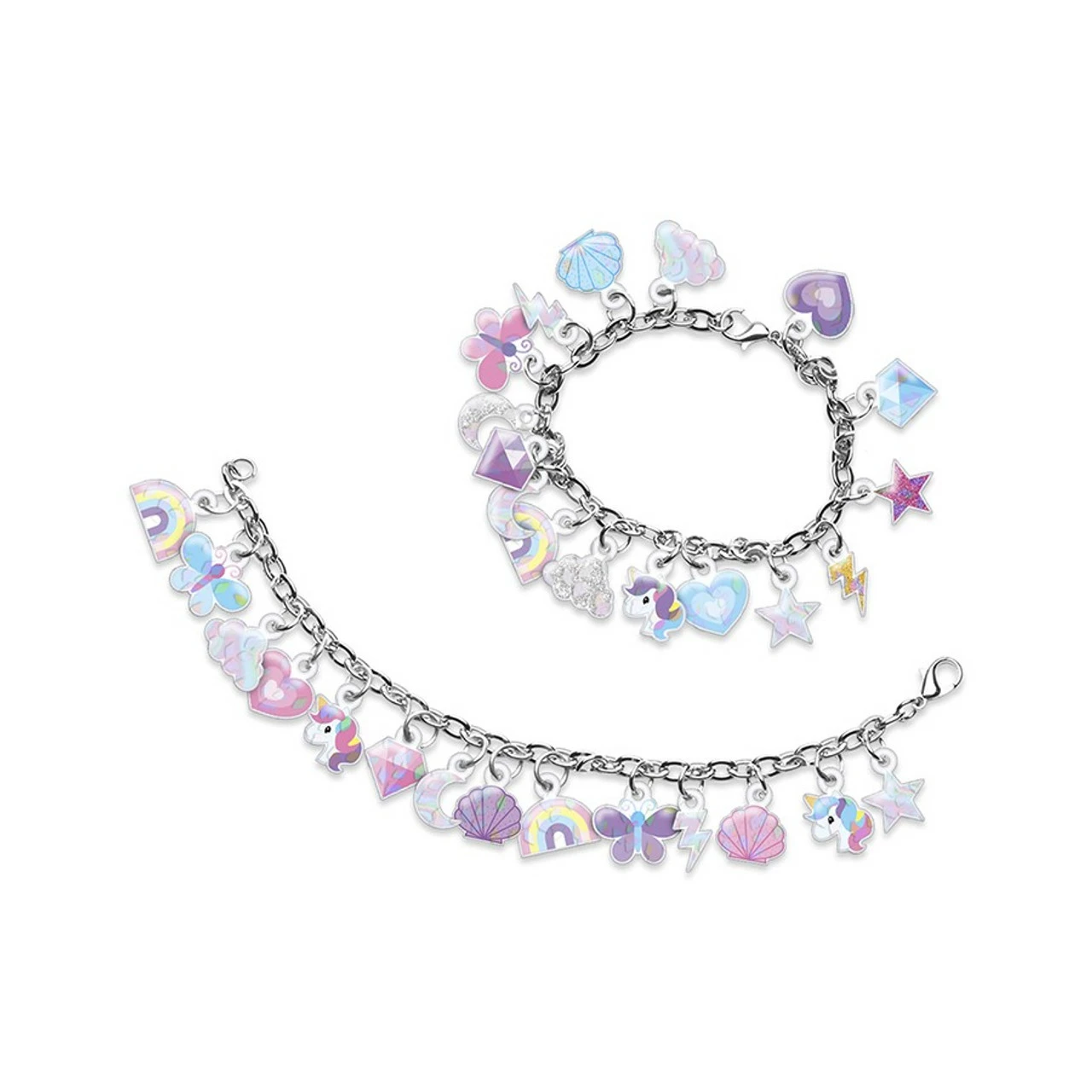 - Decorate with: Cute Unicorns, diamonds, clouds, stars, rainbows, moons, lightning and heart charms