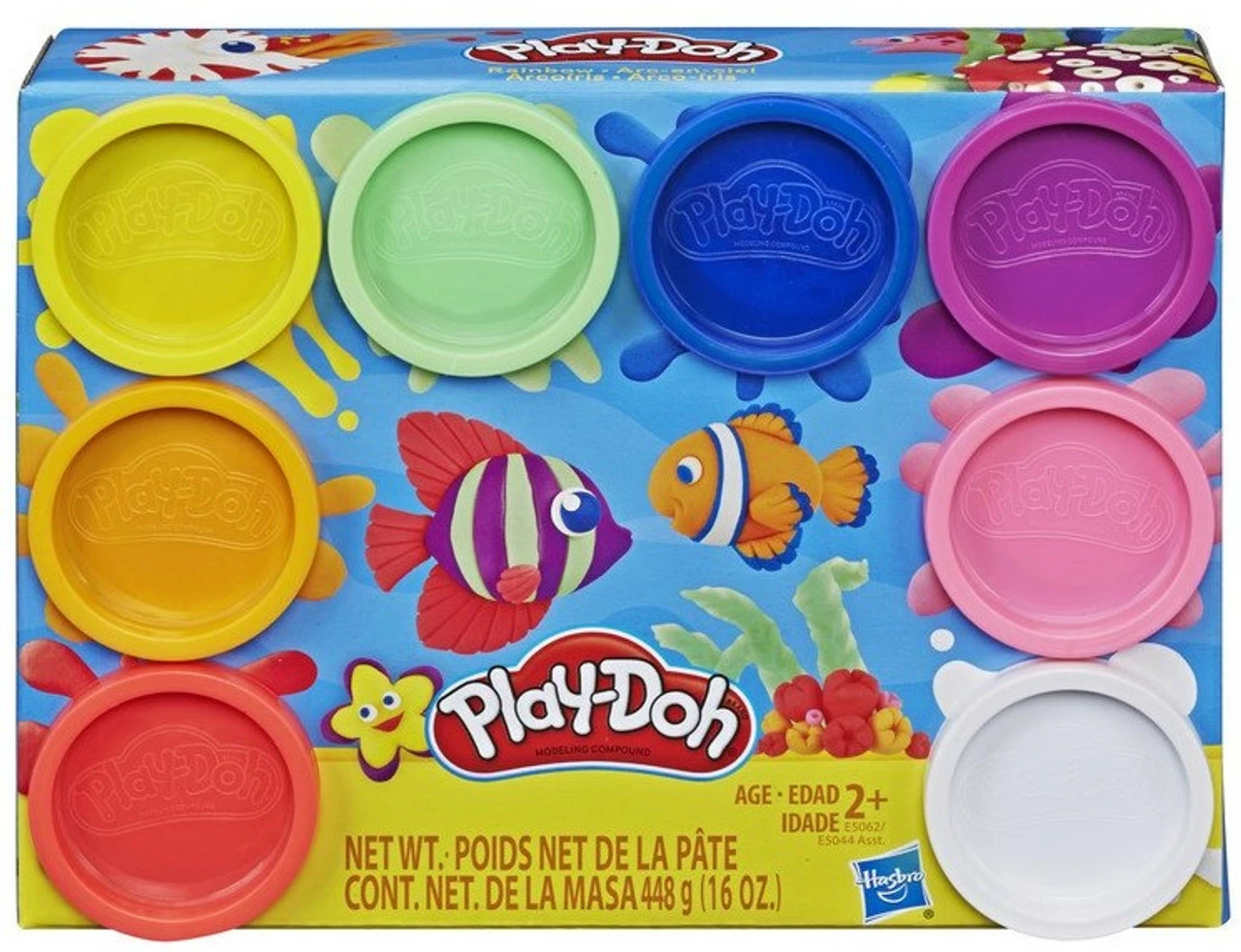 Add some spark to your creations with this 8-pack of non-toxic modeling compound! This set comes with 8 2-ounce cans of compound in a variety of bright, fun colors. Popping open a Play-Doh can inspires kids ages 2 and up to make the most vibrant creations they can imagine. This set makes a great add-on to your Play-Doh toys at home (sold separately). Teachers can also use these fun colors for classroom activities! The airtight containers keep the Play-Doh compound nice and squishy to use again and again. This Play-Doh 8-pack is sure to brighten up playtime for kids ages 2 and up who love to craft and create with arts and crafts toys like modeling clay! Purchasers will randomly receive 1 of 2 color varieties. Hasbro, Play-Doh and all related terms are trademarks of Hasbro