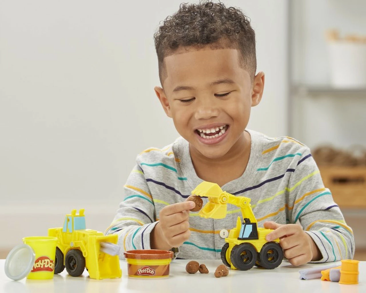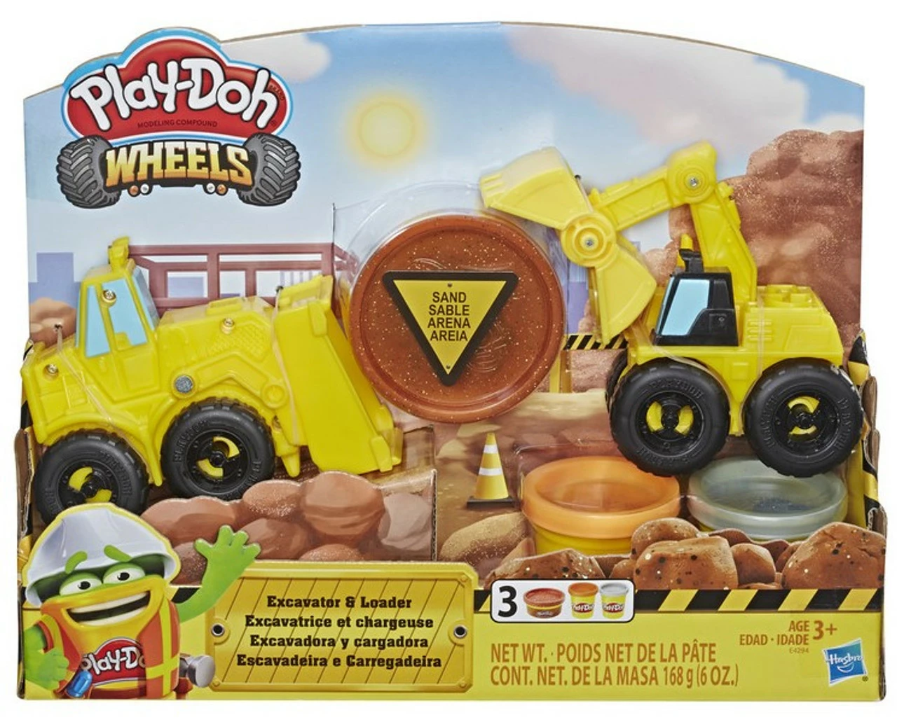 Build and bash, heave and haul, imagination does it all! This construction toy for boys and girls ages 3 and up makes it even more fun to get creative. These 2 mighty front-end loader and excavator toy trucks feature their own giggle-worthy ways to shape and create all kinds of construction-themed shapes like rocks, hard hats, and shovels. The 3 non-toxic Play-Doh colours each come in 2-ounce cans, and one of them contains awesome Play-Doh Sand Buildin’ Compound. It’s just like the squishy Play-Doh compound we all know and love but with gritty specks mixed in to look like sand. This and other Play-Doh Wheels toys make the perfect gift for truck-loving pre-schoolers to get them engaged in creative activities with Play-Doh compound!