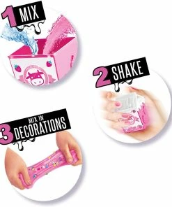 Making the slime is simple: pour the slime powder and water into the shaker and then shake the mixture until it transforms into slime! Finish by adding the matching decoration. This vanity is a perfect way to have a DIY day with your friends, or to give as a gift to your BFF!