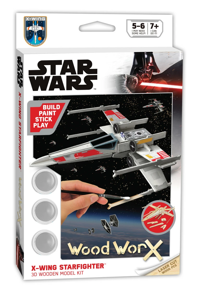 Wood Worx presents a detailed re-creation of the Rebel X-Wing Starfighter featured in the movie “Star Wars: A New Hope”. Follow the step-by-step instructions to simply Build, Paint, Stick and Play!